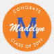 Orange and Blue Custom Graduation Classic Round St Classic Round Sticker