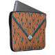 A chic and versatile style statement, the original artwork by ZoeSPEAK on this 15” Laptop Sleeve is done in the style of an envelope clutch bag. It's a pattern looking like ribbed fabric in a burnt orange colour, with spheres emerging through the fabric in shades of yellow orange and aqua blue. The shapes are smudged as if they are falling. The top flap of the purse is bordered by a band of textured blues, with a very thin red orange edge. There is, on the handbag, a bluish silver diamond shaped closure at the tip of the flap. On this is an optional monogram which is set for you to personalise, or delete if you prefer.