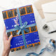 Three Photo Graduation Collage Blue and Orange Personalised Wrapping Paper.