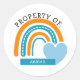 Design features pretty orange and blue rainbow with heart. Make your own sticker for school, the office, home or any other shared space. Personalise this design with your own text.