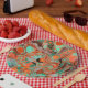 Orange and Brown Abstract Art Birthday Party Paper Plate