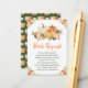 This cute and fun watercolor book request enclosure card features pumpkins in orange and white with beautiful floral arrangements. The text combines handwritten script and sans serif fonts for a stylish and modern look. This is perfect for an autumn fall baby shower.