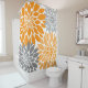 Orange and Grey Chrysanthemums Floral Pattern Shower Curtain