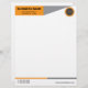 A bright orange rectangle on the left, with a grey triangle leading your eye to the company logo makes this letterhead stand out! Colourful and professional, very sharp looking.