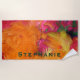 This unique,personalised beach towel is decorated with our original photograph of bright orange, hot pink, and yellow feathers. Colourful, festive, and FUN". You can easily personalise or delete name. All Rights Reserved © 2017 Alan & Marcia Socolik