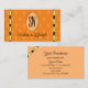 YOUR FAVORITE - Make a lasting impression with this elegant and luxury business card design featuring shimmery golden decor borders and oval frame. On the front matching monogram pattern on a orange background and the back is peach.