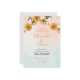 Are you looking for a floral wedding invitation, but want it to stand out in a crowd? Check out this orange and pink floral wedding invitation. It is on a soft watercolor background which shows watercolors of blue, orange and cream. The flowers decorate the top of the invitation, and they are orange, pink and blush coloured. This is a really pretty wedding invitation which would look nice for any wedding! This is especially lovely for a garden wedding, a backyard wedding, a spring wedding or a summer wedding.