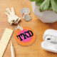 The cute Orange and Pink TKD Keychain was made especially for the Taekwondo Martial Artist. Bold black TKD letters with a pink and orange gradient background. This custom martial arts key ring makes a great gift for the martial arts tae kwon do girl for a belt rank promotion test.