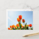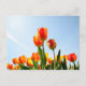 Orange and red tulips from below postcard