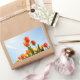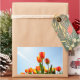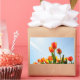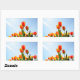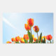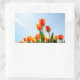 Orange and red tulips from below rectangular sticker