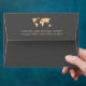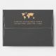 This chic, modern wedding invitation envelope features a smoky grey background with an orange coloured world map and matching text. Perfect for the wedding of any couple who loves to travel, or anyone having a destination wedding. The inside of the envelope features an elegant matching pattern.