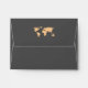 This chic, modern wedding rsvp return envelope features a smoky grey background with an orange coloured world map and matching text. Perfect for the wedding of any couple who loves to travel, or anyone having a destination wedding. The inside of the envelope features an elegant matching pattern.