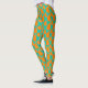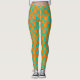 Orange And Tel-green Abstracts Leafs Pattern Leggings