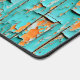 Faux distressed wood in turquoise blue and orange with a chipped paint effect repeated pattern computer mat.
