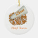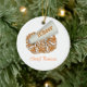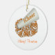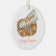 Round shaped Christmas tree ornament, with a orange and white cheerleader's pom pom and a megaphone that says, iCheer, on it. Personalise with your name on the bottom.