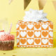 A wrapping paper built with an orange and white chequered pattern with hearts in large size. Customise the white background colour among several options.