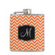 Orange and White Chevron Pattern with Monogram Hip Flask