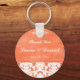 This orange and white damask wedding favour thank you keychain matches the invitation and other items shown below and would make a great gift to give to your wedding guests. The text is customisable so you can change it to whatever you want. You can use it as a thank you for your guests or for a few select people who helped make your wedding day extra special. You can also pick one up for your spouse to help make sure they remember the anniversary of your big day!