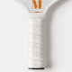 This modern pickleball paddle design features an orange and white flower background, with your initial in bold orange text for a look that is simple and stylish, yet professional.