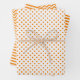 A wrapping paper sheet set built with polka dot, striped and chevron patterns in orange and white. Customise the orange background colour, pattern size among other options.