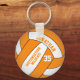 This personalised volleyball keychain with team name features an orange and white volleyball upon which you can customise the player's name and jersey number plus school team and mascot name - by katz_d_zynes