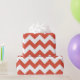 Alternating rows of orange and white zigzags make up this bold geometric pattern. The dark orange and white design was digitally designed from scratch.
