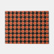 Large, decorative doormat that features the photo image of an orange and yellow Collarette Dahlia bloom on a black background and printed in a repeating pattern. Use indoors or in covered entryway areas. A lovely, floral design!