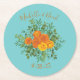 Orange & Aqua Wedding Modern Floral Round Paper Coaster