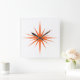 Orange Atomic Starburst Mid Century Modern Square Wall Clock