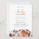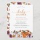 Orange Autumn Baby Shower Invitation. Celebrate the fall festivities with hand-painted watercolor pumpkins, burgundy and terracotta fall flowers, forest green and rust botanicals, and burgundy handwritten calligraphy script. Let us help you make your baby shower extra special with this beautiful invitation.