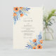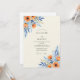 This design features a striking contrast between vibrant orange poppies and cool azure blue watercolor foliage. Golden sprigs add a touch of elegance to the lush corner arrangements. The cream background enhances the airy and sophisticated mood, making it perfect for a spring or summer event. The botanical elements create a balanced and artistic display of nature.