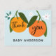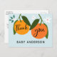 Thank your guests for celebrating the parents to be! This fun fruit-themed baby shower thank you postcard features adorable orange illustrations. Personalise with your information or click "Click to customise further" to edit font styles, size and colours.