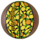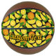 Orange slices and leaves. Seamless pattern. Custom background colour. Custom text.