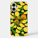 Orange slices and leaves. Seamless pattern. Custom background colour. Custom text.