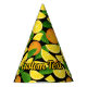 Orange slices and leaves. Seamless pattern. Custom background colour. Custom text.