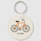 A keychain featuring an illustration of an orange bicycle. Personalise with your name under bike.