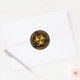 Orange and black biohazard symbol sticker.