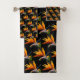 Orange Bird of Paradise Plant Pattern on Black Bath Towel Set