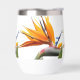 This trendy, stainless steel wine tumbler helps keep your drink chilled wherever you are and features the photo image of an orange bloom of the tropical Bird of Paradise Plant printed in a repeating pattern on a white background. Also referred to as a Crane Flower. A lovely, floral design!