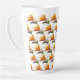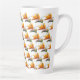 Chill out with an iced coffee latte in this ceramic mug that features a wrap-around photo image of an orange bloom of the tropical Bird of Paradise Plant printed in a repeating pattern on a white background. Also referred to as a Crane Flower. A lovely, floral design! Select your latte mug style.