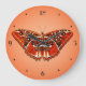 Spotted butterfly in shades of orange with black and white on a soft, orange gradient background