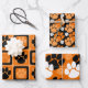 Orange, Black and White Pawprint Wrapping Paper Sheets