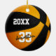 This cool team colours basketball ornament for boys or girls features a realistic looking basketball that has alternating black and orange recolored panels - personalise the front and back of ornament with year and player's name in an "autograph" style font overlying the athlete's jersey number - by katz_d_zynes