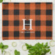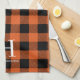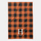 Orange Black Buffalo Plaid Monogram Holiday Tea Towel