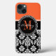 Orange Black Damask Pattern Monogram Case-Mate iPhone Case