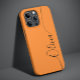 Orange Black Elegant Calligraphy Script Custom Personalised Name iPhone 14 Smart Phone Cases features a modern and trendy simple and stylish design with your personalised name in elegant hand written calligraphy script typography on a orange background. Designed by ©Evco Studio www.zazzle.com/store/evcostudio