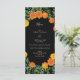 Orange & Black Gothic Peony & Rose Wedding Menu