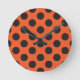 Orange + Black polka dot pattern modern bug Round Clock