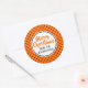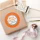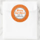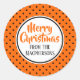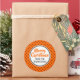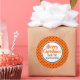 Sticker holiday gift tags with an orange and black polka dot background. The "Merry Christmas" greeting and who it is from can be changed.