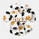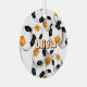 This fun soccer themed ornament is printed on the front and back with the image of a cluster of varied size soccer balls that have orange, black and white panels - customise with the athlete's name on the front and commemorative year on the back - by katz_d_zynes